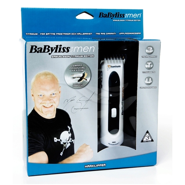 BaByliss introducerer S.A.S: Smart Adjusting System. Uanset klippevinkel får du altid samme klippelængde! Elektrokemiskt 3D slibede blade giver exeptionel skarphed. 39 mm. bred klippeflade. 2 distancekamme som let indstilles: 3-18 mm., 21-36 mm. med en nøjagtighed til 1,5 mm. Præcisionskam 0,5 - 2,5 mm. medfølger. Opladelig (30 min. klippetid), kan anvendes med eller uden ledning. Turbo funktion giver 20% ekstra kraft. Selvsmørrende. Tilbehør: Kam, rengøringsbørste.