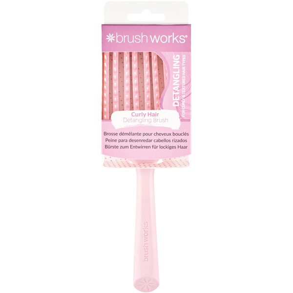 Brushworks Curly Hair Detangling Brush er en specialdesignet hårbørste til krøllet hår, der gør det nemt at rede knuder ud uden at skade eller ødelægge krøllernes naturlige form. Børsten glider skånsomt gennem håret og hjælper med at definere krøller, samtidig med at den reducerer slid og krus.