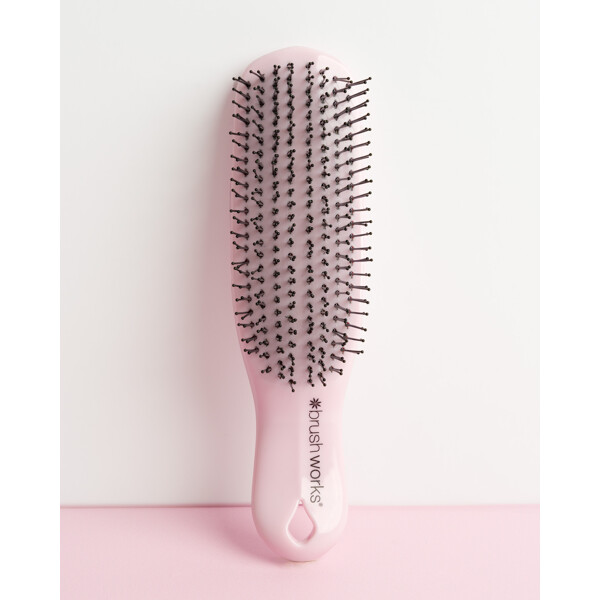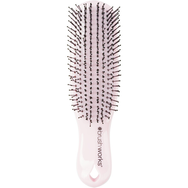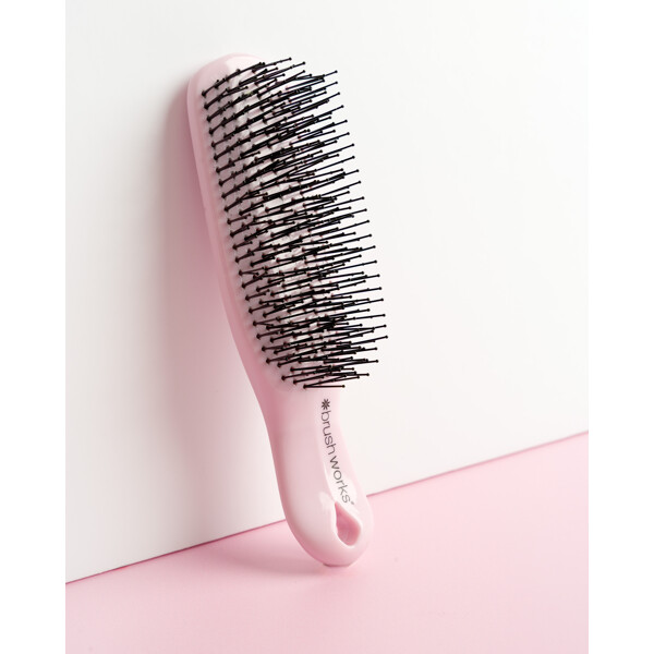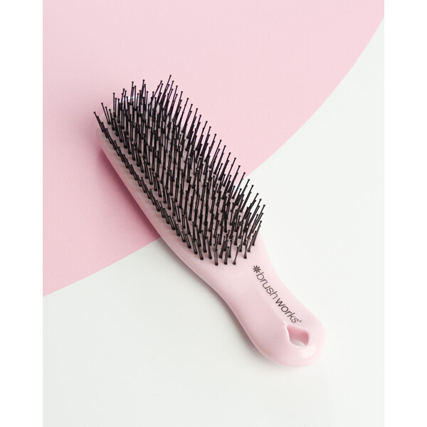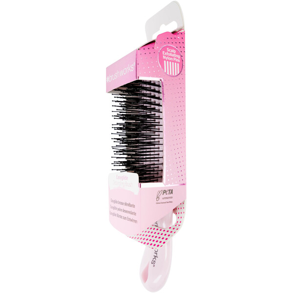 Brushworks Easyglide Detangling Brush er den perfekte løsning til nem hårpleje og styling. Børsten har otte rækker med fleksible nylonpigge i to forskellige længder, der let løser op for sammenfiltringer og efterlader håret blødt og medgørligt. Den fungerer lige godt i både vådt og tørt hår og passer til de fleste hårtyper – perfekt til alle lejligheder, uanset om du reder balsam igennem, tager hånd om brusebadets sammenfiltringer eller bare børster håret dagligt.De fleksible pigge giver desuden en skånsom hovedbundsmassage, der fremmer afslapning og hjælper med at rense hovedbunden for urenheder og produktrester, for en frisk og ren følelse.PETA-godkendt – cruelty-free og vegansk.