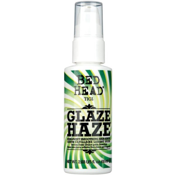 Bed Head Glaze Haze - Smoothing Hair Serum fra TIGI er en sød oplevelse som indkapsler hvert eneste hårstrå for at blødgøre håret og bekæmpe luftfugtighed, give håret glans og forkorte tørretiden. Serummet indeholder: Sukkerrørs-ekstrakt: tilfører fugt og glans til håret.Risklid-olie: tilfører protein for at styrke håret, udglatte skællaget og reducere kruset hår.Bambus-ekstrakt: styrker håret for at forebygge slitage og spaltede hårspidser.Kashmir-keratin: indeholder genopbyggende proteiner for at tilføre håret fugt og gøre det blødt. Duft: Créme Brûlée