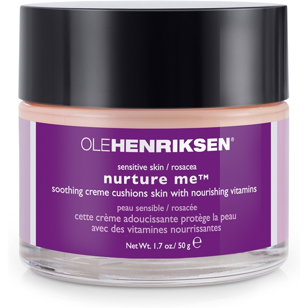 Nurture Me Creme er en beroligende og fugtighedsgivende creme til sart hud fra Ole Henriksen. Denne luksuriøst luftige creme beroliger huden med nærende vitaminer som lindrer en følsom hud og hjælper med at beskytte og fugte sart hud. Den indeholder nærende olier der beskytter mod skader forårsaget af vind og vejr ved at styrke hudens naturlige beskyttelse.