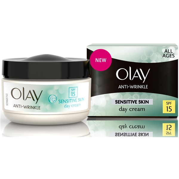 Olay Anti Wrinkle Sensitive Skin Day Cream er en dagcreme som er udviklet specielt til sart hud, og som samtidig modvirker hudens første alderstegn. Indeholder ingen olier, farvestoffer eller parfumer. Med SPF 15.