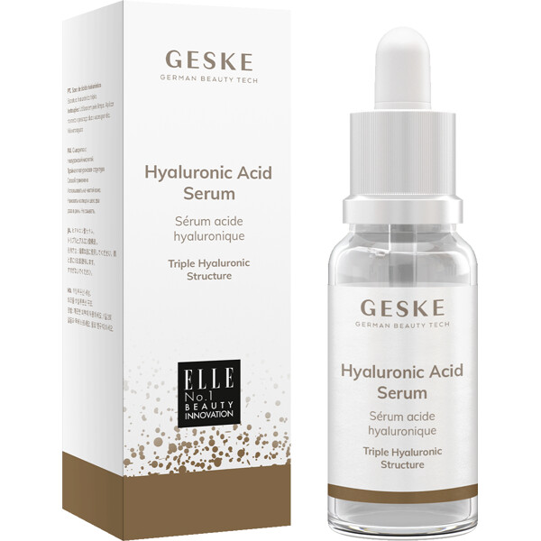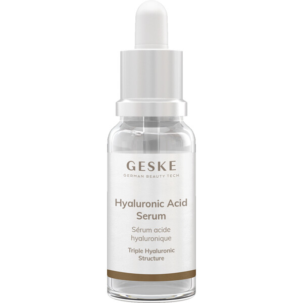 Serum med hyaluronsyre er den perfekte følgesvend til GESKE's anti-aging- og hudopstramningsenheder, og når den bruges i kombination, får din hud en smuk glød og en rigelig blødhed. Serumet har særligt fugtgivende egenskaber på tør hud takket være sin trippel-hyaluronstruktur, som er et lavmolekylært stof, der gør, at det trænger meget dybt ind i huden.