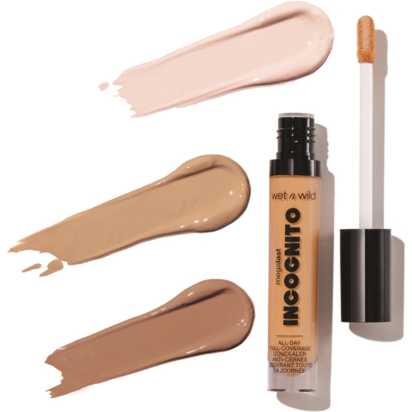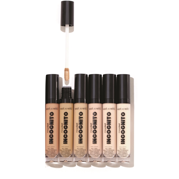 MegaLast Incognito Full Coverage Concealer fra Wet n Wild er beriget med nærende og fugtighedsgivende ingredienser såsom sheasmør, lakridsrodsekstrakt og mangofrøsmør. Concealeren er langtidsholdbar og kan opbygges med medium til fuld dækning, ligesom den giver en mat finish.
