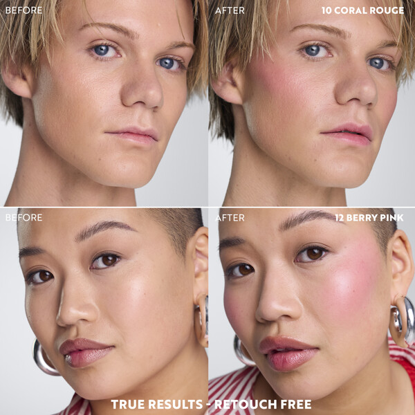 Påfør med en duttende bevægelse direkte på kinder og læber, og blend derefter ud med fingerspidserne, en svamp eller børste for et sømløst look. Behold altid plastlinsen på for at bevare produktets ydeevne og farvegengivelse.