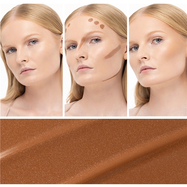 Den bløde og cremede tekstur smelter ved kontakt med huden og giver en forfriskende glød som aldrig før! Pudeapplikatoren fordeler produktet jævnt for at definere ansigtstræk og blandes let ud for en naturlig contour-finish.