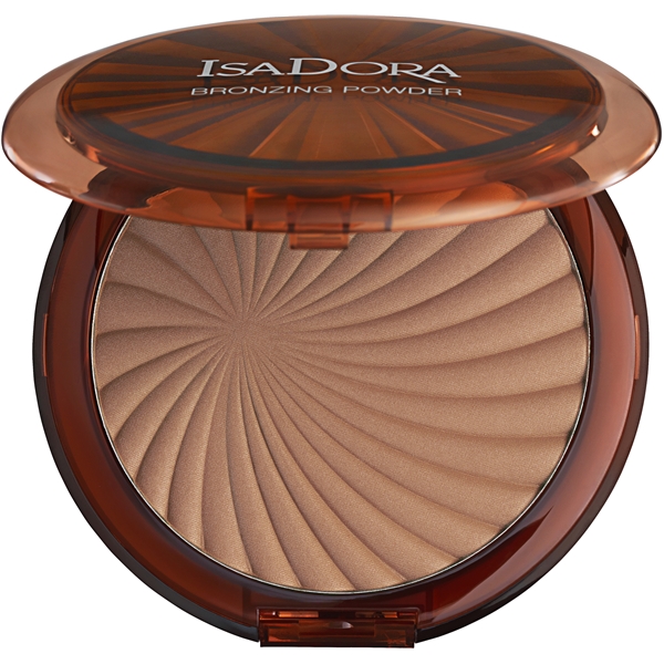 IsaDora Bronzing Powder er et rigt pigmenteret og stort solpudder, der skaber et friskt og solkysset look med en semi-transparent effekt. Påføres på ansigt, skuldre og udskæring. Til alle hudtyper. Uparfumeret. Klinisk testet.