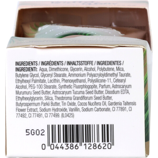 AQUA, DIMETHICONE, GLYCERIN, ALCOHOL, POLYBUTENE, MICA, BUTYLENE GLYCOL, GLYCERYL STEARATE, AMMONIUM POLYACRYLOYLDIMETHYL TAURATE, ETHYLHEXYL PALMITATE, LECITHIN, PHENOXYETHANOL, POLYSILICONE-11, CETEARYL ALCOHOL, PEG-100 STEARATE, SYNTHETIC FLUORPHLOGOPITE, PARFUM, ASTROCARYUM MURUMURU SEED BUTTER, ASTROCARYUM TUCUMA SEED BUTTER, DISODIUM EDTA, ETHYLHEXYLGLYCERIN, SILICA, THEOBROMA GRANDIFLORUM SEED BUTTER, BUTYROSPERMUM PARKII BUTTER, TIN OXIDE, COCOS NUCIFERA OIL, GARDENIA TAITENSIS FLOWER EXTRACT, SODIUM HYDROXIDE, VANILLIN, SODIUM CARBONATE, CI 77891, CI 77492, CI 77491, CI 77499. (IL0425)