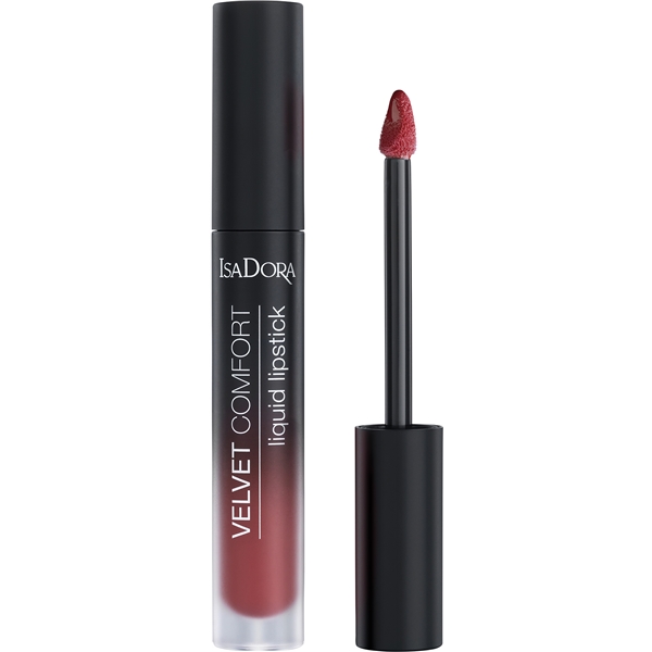 IsaDora Velvet Comfort Liquid Lipstick er en behagelig og pigmentrig flydende læbestift med en semi-mat finish.