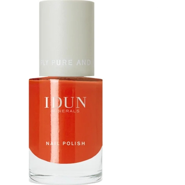 IDUN Nail Polish indeholder ingredienser af højeste kvalitet og har en long-lasting formel, som giver en strålende glans. Neglelakken indeholder en såkaldt 5-free formel, hvilket indebærer at firmaet har fjernet fem sundhedsskadelige kemikalier. Derudover indeholder neglelakken ingredienser, som virker plejende for neglene.