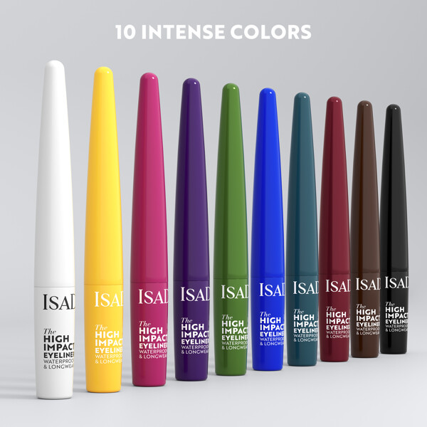 The High Impact Eyeliner kommer i ti udtryksfulde nuancer med intens farve, der lader dig vise både stil og personlighed. Uanset om du går efter et subtilt farvestrejf eller en skarp, grafisk vinge, sidder den hurtigtørrende og klatfri formel på plads – selv gennem sved, vand og fugt. Den præcise dip-liner glider blødt over huden uden at trække, hvilket gør applikationen både enkel og smidig.