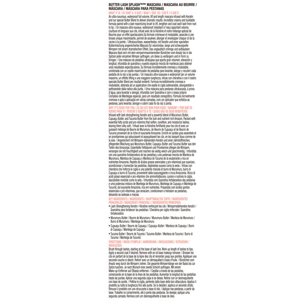 Murumuru Butter Lash Splash Mascara er en vandfast volumemascara, der løfter, forlænger og giver fylde.