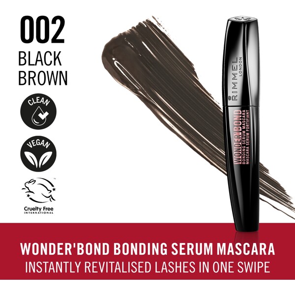 Rimmel Wonder Bond Bomb Bonding Serum Mascara giver dig den ultimative længde og styrke til bombshell-vipper, der ser længere ud!