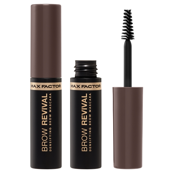 Brow Revival fra Max Factor er en øjenbrynsmascara med fibre for at give et mere fyldigt resultat, som holder hele dagen. Den indeholder fire blødgørende olier i form af maracujaolie, cameliaolie, arganolie og marulaolie. Den smarte minifiberbørste sikrer en smidig påføring, som dækker hvert hårstrå.