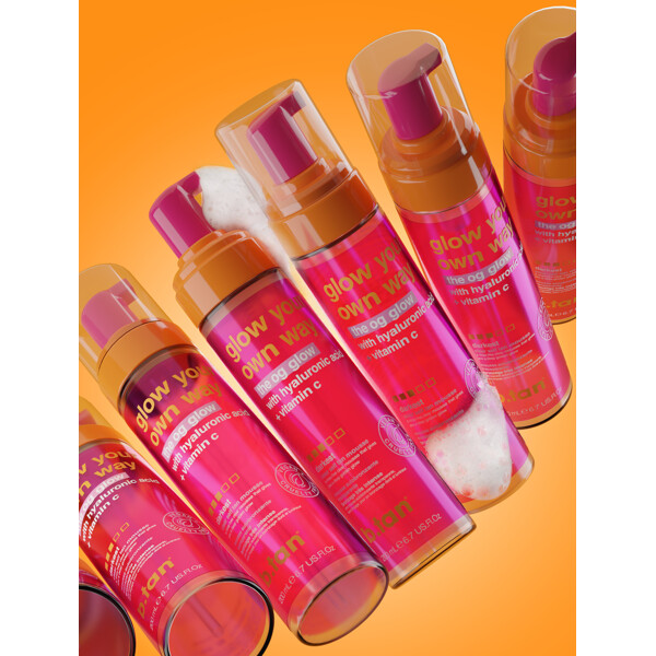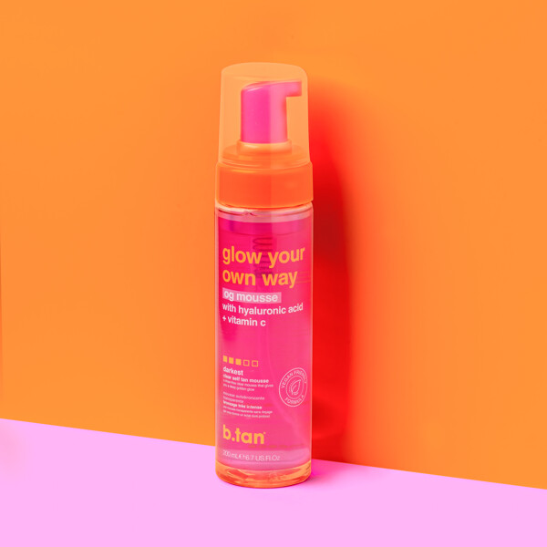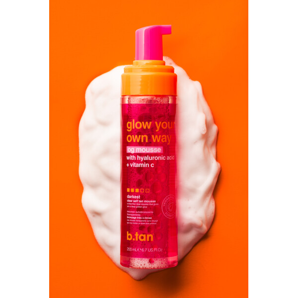 Glow Your Own Way The OG Glow Mousse Darkest fra b.tan giver en øjeblikkelig selvbrunereffekt. Påfør og få en enkel glød, ingen afskylning kræves.