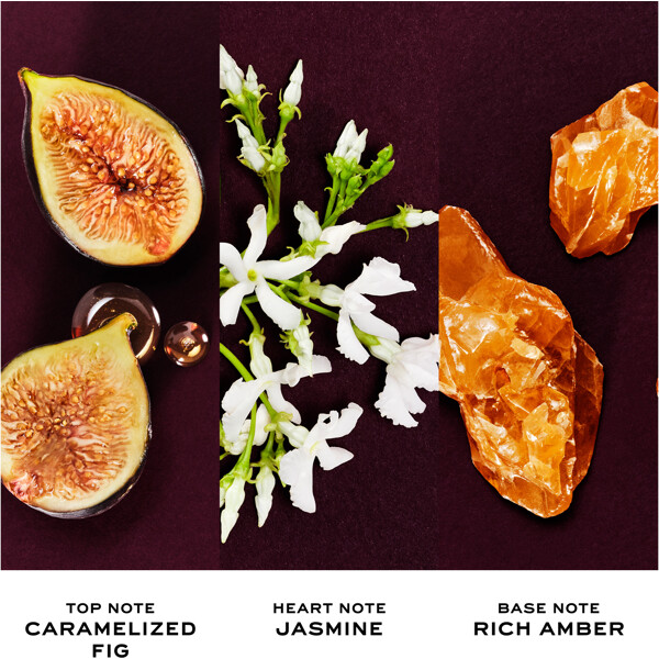 Duften åbner med en saftig akkord af karamelliseret figen, der møder et hjerte af blomstrende jasmin absolut. Basen hviler på en varm amberakkord, der giver duften dens fyldige dybde og langvarige intensitet.