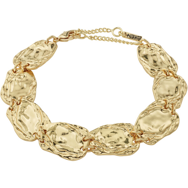 Det guldbelagte SHIFT-armbånd fra Pilgrim er et must-have for dig, der elsker unikke accessories med karakter. De flade, organisk formede mønter har en rå, tekstureret overflade, der giver smykket en cool håndlavet følelse. En perfekt kombination af boho elegance og klassisk stil.