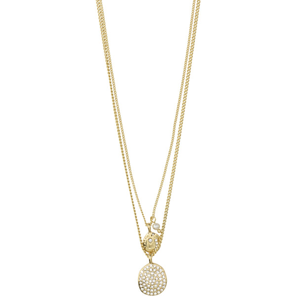 De guldbelagte SHIFT-halskæder fra Pilgrims Moments of Change-kollektion er skabt til layering-elskere. 2-i-1-sættet kombinerer to møntkæder med krystalbesatte vedhæng og en lille ferskvandsperle, der giver en organisk, fri-åndet følelse. Brug dem sammen for et drømmende lag-på-lag-look eller style dem separat for et minimalistisk touch.