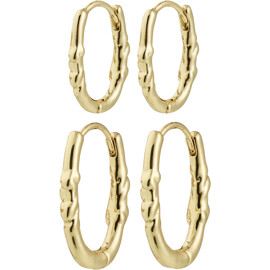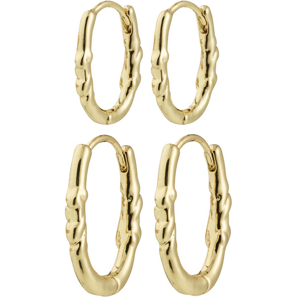 De guldbelagte SENSE-hoops fra Pilgrim giver dig et 2-i-1 sæt med ovale hoops i et organisk formet design, der skaber en perfekt blanding af tekstur og glans. Designet med let anvendelige kliklåse er de et must i din smykkesamling – perfekte både til solo brug og stacked styling.