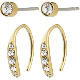 Med GIONNI-øreringene fra Pilgrim får du et 2-i-1-sæt, der tilbyder uendelige stylingmuligheder. De små guldbelagte øreringe med Preciosa-krystaller er dine daglige must-haves, mens de afrundede ørekroge giver et touch på næste niveau, når du vil spice dit look op.