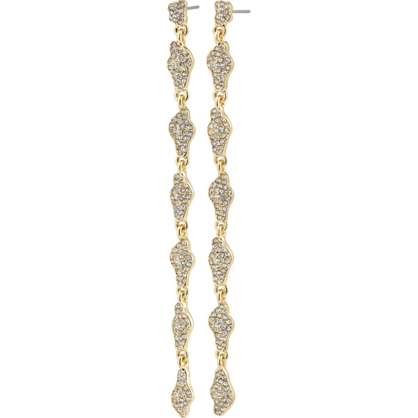 De guldbelagte BASIL-øreringe fra Pilgrim er det ultimative statement-smykke for dig, der elsker en eksklusiv, flydende silhuet med masser af glans. De lange, organisk formede led er dekoreret med Preciosa-krystaller, der fanger lyset fra alle vinkler og skaber et luksuriøst, dynamisk udtryk.