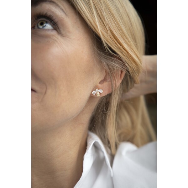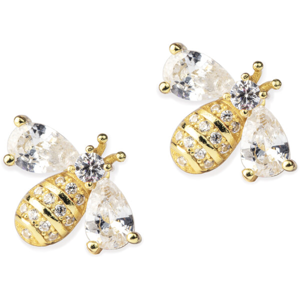 Et ørering, der ligner en bi i 18K guldbelagt 925 sølv med klare håndindfattede Cubic Zirconia sten, der reflekterer lyset fantastisk.